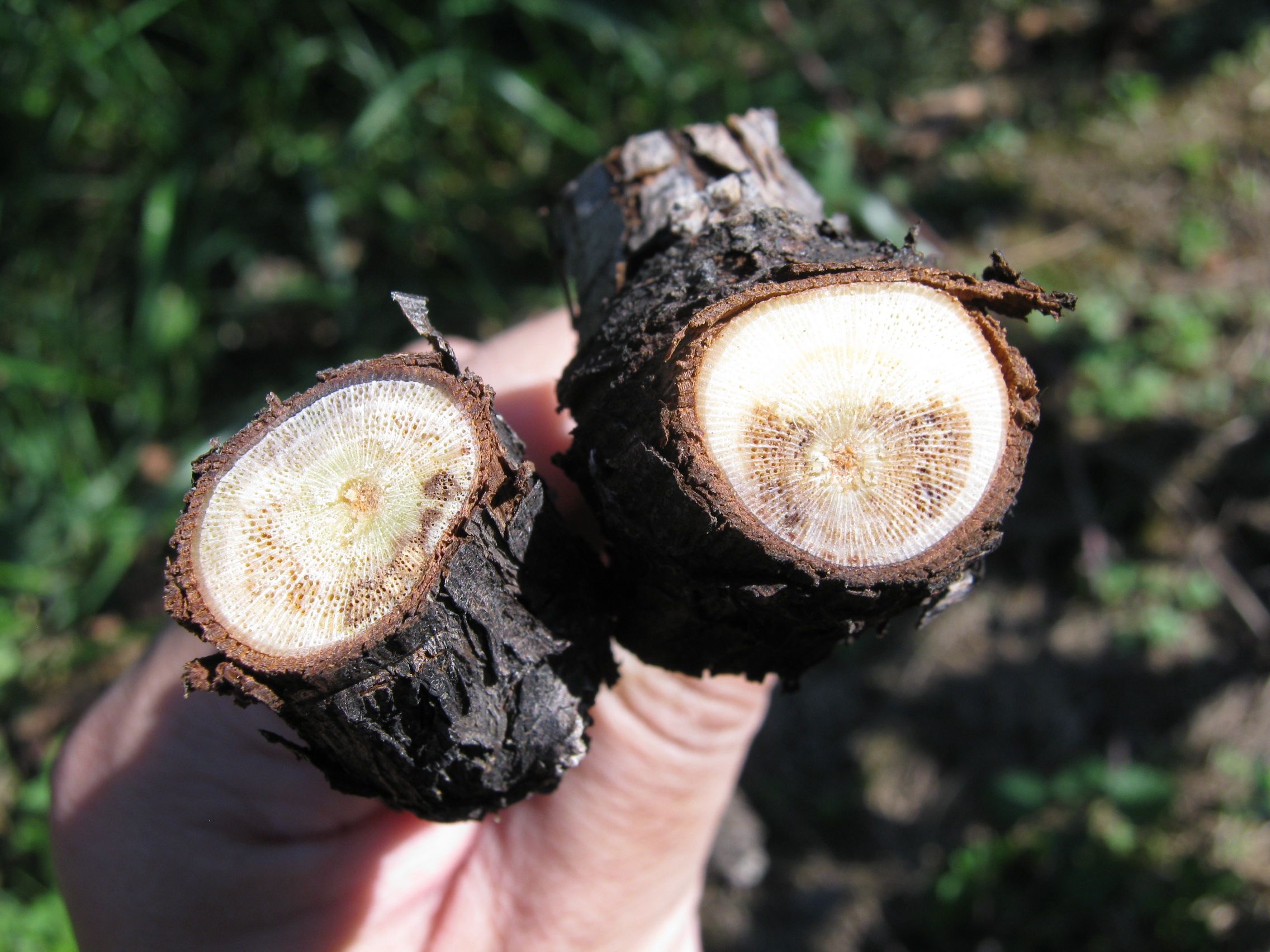 - V-Shaped canker on cordon Photo Credit Renaud Travadon