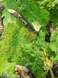 Black lesions on green tissue